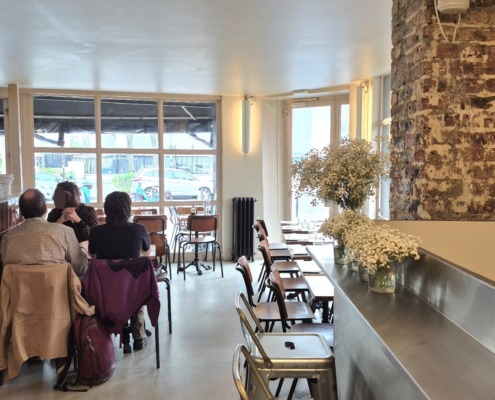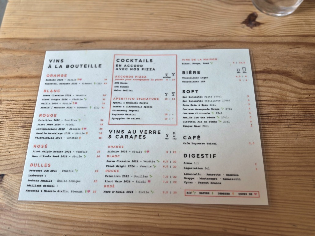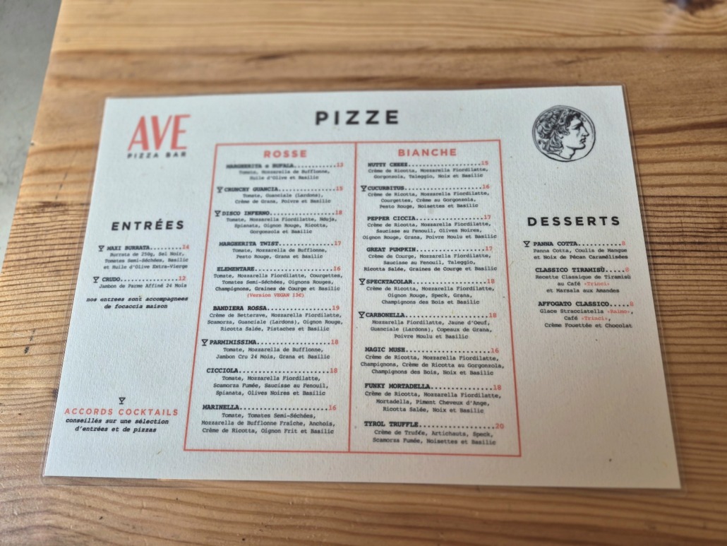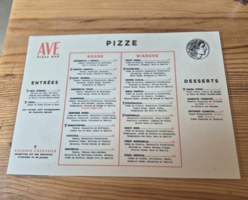 Aunque en París hay una gran cantidad de pizzerías napolitanas, las romanas de calidad son una auténtica rareza. Así que, cuando encuentras una, no la sueltas, aunque esté un poco apartada, como este Ave Pizza Bar, situado en las alturas de Ménilmontant. Así que aquí tienen las pizzas finas y crujientes, a diferencia de sus homólogas napolitanas, que son gruesas y esponjosas. La Carbonella, que pedimos ese fin de semana, nos deleitó con su exquisito sabor, al igual que la panna cotta con coulis de mango y nueces pecanas caramelizadas que elegimos para poner el broche final a este festín. Para hacer honor al «bar» de su nombre, el local ofrece maridajes de platos y cócteles.
