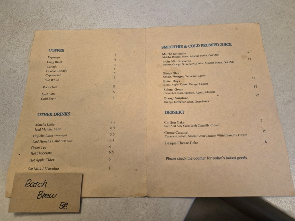 El interior de esta cafetería tan de moda es igual que la fachada: un poco destartalado. Azulejos medio arrancados, placas de yeso al descubierto... La nueva dirección de Yuichiro Sugiyama y su esposa Yui Matsuzaki seduce tanto a los amantes de la moda como a los vecinos del barrio, con su selección de cafés ácidos, sus pasteles clásicos, entre los que destaca un delicioso pastel de castañas, y sus bentos para el almuerzo. Precio en la parte alta del rango. Abierto hasta las 17:00.