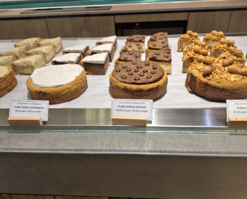 ¿Te apetece algo dulce durante una jornada de compras por el Marais? Aquí tienes una dirección muy recomendable para los amantes del flan parisino. Aquí se presenta en diferentes versiones elaboradas por un campeón francés de postres: vainilla, por supuesto, pero también avellana, chocolate, chocolate con malvavisco, pistacho y vainilla, masa de galleta, cacahuete, arroz con leche… La masa hojaldrada envuelve un flan ligeramente poco hecho para conseguir una deliciosa cremosidad. Que lo disfrutes, ya sea allí mismo o mientras echas un vistazo a los escaparates.