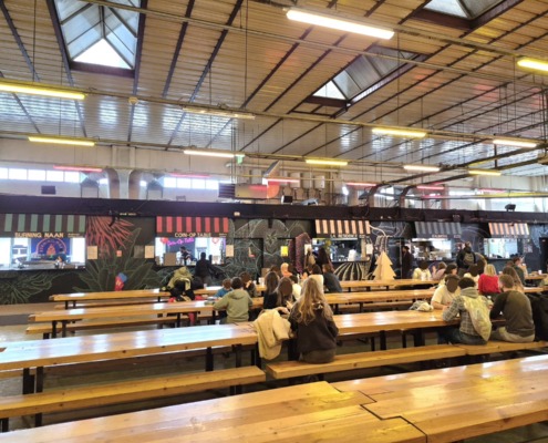 Près de la gare de Lyon, un ancien centre de tri postal transformé en espace hybride et pluridisciplinaire. On peut y manger – grec, indien, chinois, des pizzas ou de la cuisine préparée par des réfugiés… –, y boire un verre, mais aussi y partager un moment de détente – en jouant au ping-pong, à des jeux de société, au baby-foot… – ou y écouter un concert. Bref, un lieu original, festif, engagé, idéal avec des enfants, qui peuvent librement courir dans les allées.