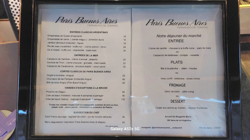 Les amateurs de viande – de moelleuses viandes – apprécieront cette table du chef argentin Fernando de Tomaso, déjà à la tête de deux restaurants rive droite. À côté d'épatantes empanadas (viande ou fromage-épinards), la maison a quand même prévu quelques entrées/plat de la mer pour celles/ceux que l'onglet à la braise, le bife de logo ou le churrasco de las Pampas ne tentent guère.