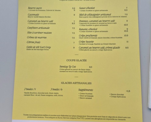 Ici, c'est crêperie et oyster bar. Audacieux, mais pas choquant puisqu'il s'agit de deux produits emblématiques de la Bretagne. C'est même plutôt finaud. En entrée, 3 huîtres (de Cancale), suivies d'une galette, voire d'une crêpe pour les plus gourmands (ce qui est notre cas). Les produits utilisés viennent directement d'Armorique, comme la patronne. Nous voilà rassuré. Dans l'assiette, les galette et crêpe choisies sont bien croustillantes, goûtues. Et puis la bonne idée est d'avoir remplacé le pain par des morceaux de galette pour accompagner les huîtres. Un vrai plaisir ! Ah oui, « ty coz » en breton signifie « vieille maison ».